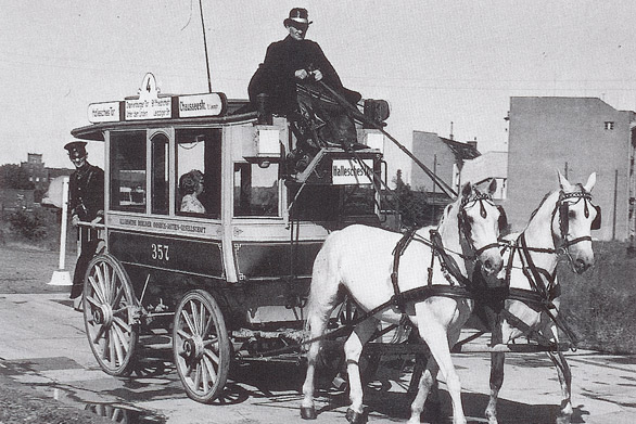In 1897 the cost of a ticket to ride on this horse-drawn omnibus was 5 Pfennigs or half a Groschen. The citizens of Berlin gave the bus the nickname "Sechser", because until 1873 the Groschen coin was worth twelve Pfennigs rather than ten. The fare was kept low, because the horse-drawn omnibus had to compete with the electric tram. The horse-drawn vehicles were gradually replaced by motorised buses over a long period of time. In Berlin, they could still be seen on the streets in the nineteen-twenties.