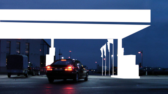 A filling station is the central exhibition design element. The various themes are staged at typical and well-familiar filling station components, such as the drive-up or car wash. The counter in the sales room serves as reception, time machine and central starting point for the visitors. Here they are transferred into the year 2032 - the future of mobility.The exhibition's conceptual design was developed by Reiner Schipporeit (project manager) and the neuStart project team.