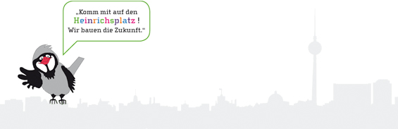 Auf dem Heinrichsplatz erleben die Kinder eine Mischung aus eigenem Entdecken und geführtem Erkunden. Sie machen sich gemeinsam mit pädagogisch geschulten Mentoren und einen Audiobegleiter, den Spatz vom Heinrichsplatz auf, zu bauen, zu erkunden und neu zu entwerfen.