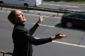 "Rede ans Volk" lautet der Titel der in Zusammenarbeit zwischen der Medienkünstlerin Elvira Hufschmid und der Performerin Monika Lilleike entstandenen Videoarbeit, die zur Zeit in der Ausstellung "neuStart - Mobil ohne Öl?" im Technischen Museum zu sehen ist und einige Anregungen gibt, nicht nur über technische, sondern soziale und kulturelle Aspekte des Autos nachzudenken.