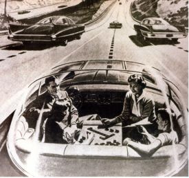 In Spielbergs Science-Fiction-Film "Minority Report" aus dem Jahr 2002 wird das Auto der Zukunft in einer äußerst realistischen Weise gezeigt. Zusammengebaut von ultraschnellen Robotern in einer menschenleeren nanotechnischen Fabrik, mit Linearmotoren ausgestattet, sieht es aus wie eine Kreuzung aus einem heutigen Smart und einem Ferrari, aber ganz ohne das protzige Design eines Zeitalters, in dem die Verschwendung fossiler Brennstoffe noch sexuelle Leadership versprach. Es ist klein, kompakt und schnell, futuristisch und effektiv. Es fährt von alleine - auf magnetischen Schienen. Der menschliche Geist hat sich längst so intensiv mit den automobilistischen Utopien auseinandergesetzt, dass selbst heute die meisten Auto-Visionen alt aussehen. In den 20er Jahren des 20. Jahrhunderts schon stellte Buckminster Fuller sein "Dymaxion Car" vor - ein tropfenförmiges Utopiegefährt auf drei Rädern, das sich auch in die Luft erheben sollte (schließlich erwies es sich als zu schwer, auch zum Fahren). Unvergessen sind die automobilen Utopien des Illustrators A.C. Radebaugh, der in den 40ern und 50ern den amerikanischen "Barock-Auto-Utopismus" schuf (www.losthighways.org). In den 60er Jahren konnten wir in allen Illustrierten Automodelle bewundern, die mit Glaskuppeln ausgestattet waren (wie heute die französischen Autos). Die Familie spielte darin Karten, Männer mit Hut lasen Zeitung, während das Auto vollautomatisch über das endlose Band einer immer leeren Autobahn schnurrte. Wird sie am Ende doch noch so aussehen, unsere automobile Zukunft?